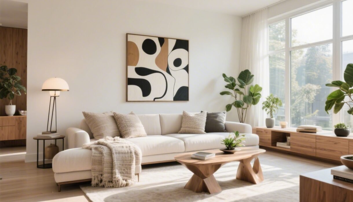 - Oversized canvas: Abstracts or black-and-white photography are timeless.