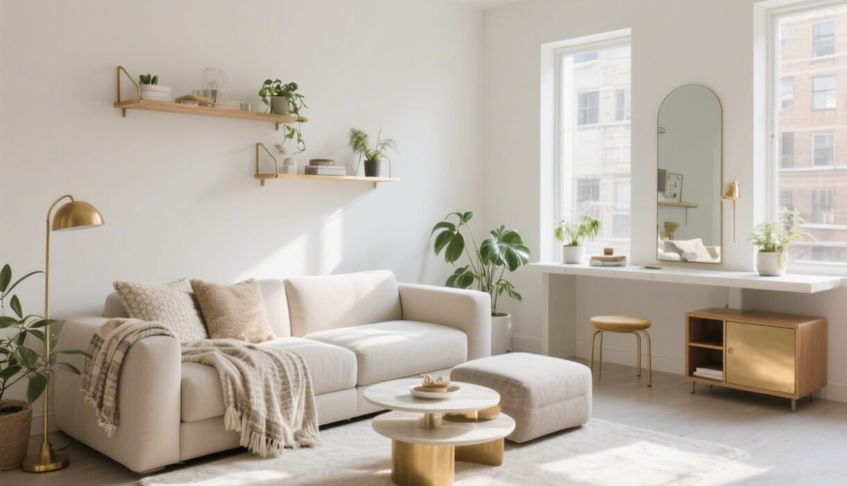 Small space ≠ tiny furniture. Choose pieces that fit your room’s footprint without feeling like props. The trick is balanced proportions, not miniatures.